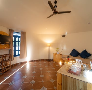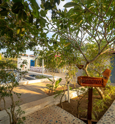 Three cozy studios by Arambol Beach with a peaceful pool and yoga space.